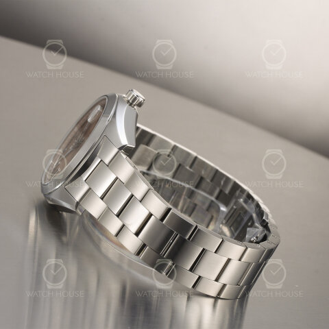 Die Bulova Automatik Surveyor fällt durch ihr warmes, braunes Zifferblatt auf, das im sanften Kontrast zum kühlen Silberton des Edelstahlgehäuses und des massiven Gliederarmbands steht. Die schlichten Baton-Indizes, das Datumsfenster bei drei Uhr und die klar gezeichneten Zeiger geben dem Design eine zurückhaltende Struktur, während die leicht changierende Oberfläche des Zifferblatts für Tiefe sorgt. Das polierte Gehäuse mit 39 Millimetern Durchmesser und die robuste Faltschließe runden die stimmige Erscheinung ab.