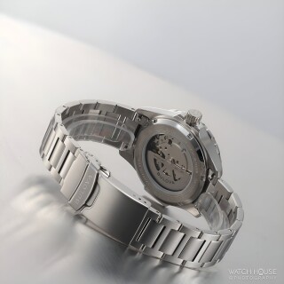 Die Bulova Marine Star fällt sofort durch ihr tiefblaues Zifferblatt auf, das je nach Lichteinfall zwischen kühler Zurückhaltung und lebendiger Tiefe wechselt, während die dazu passende Lünette dem Gesamtbild eine klare, fast maritime Struktur verleiht. Das silberne Edelstahlgehäuse und das massive Band bilden dazu einen ruhigen Kontrast, wodurch die Uhr eine ausgewogene Mischung aus sportlicher Präsenz und zeitloser Klarheit erhält.