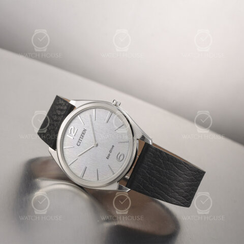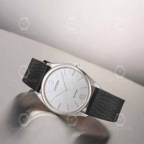 The Citizen Surrato convinces with a remarkably flat silhouette of only 4.7 millimeters, which makes the brushed stainless steel housing radiate a simple lightness that is hardly noticeable on the wrist. The silver dial with subtle baton indices and the clearly placed digits at 12 and 6 seems extremely reduced and yet refined, which in combination with the black leather bracelet creates a timeless elegance. The matt finish and the clear lines create a watch that impresses with its simplicity without losing expression.
