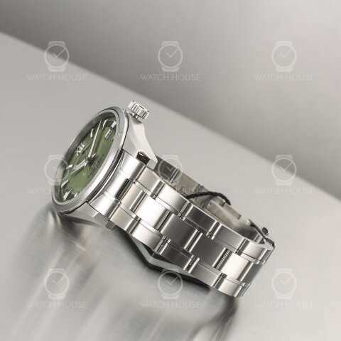 Die Orient Star RE-AU0107E00B zeigt sich in einem eleganten Grünton, der dem Zifferblatt eine ruhige, natürliche Tiefe verleiht. Im Zusammenspiel mit dem silberfarbenen Edelstahlgehäuse entsteht ein ausgewogener Kontrast, der sowohl modern als auch klassisch wirkt. Die römischen Ziffern und markanten Indizes sorgen für klare Lesbarkeit, während die Gangreserveanzeige unter der Zwölf-Uhr-Position das technische Herz der Uhr betont. Das 38 mm große, Zaratsu-polierte Gehäuse und das massive Edelstahlarmband runden den formellen und harmonischen Gesamteindruck ab.