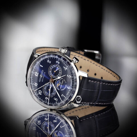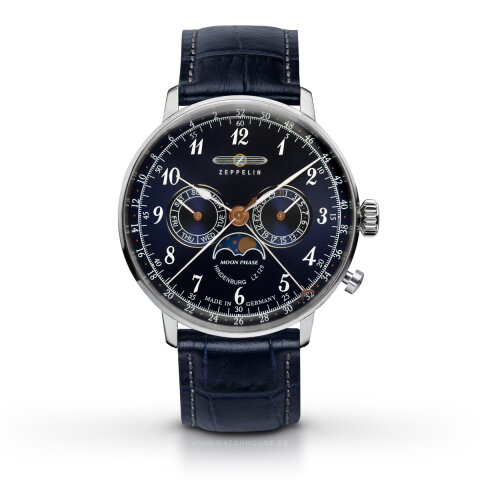 Begeben Sie sich mit der Zeppelin LZ129 Hindenburg 7036-3 Kalenderuhr mit Mondphase auf eine Zeitreise in die Pionierära des Fliegens. Dieser präzise gearbeitete Zeitmesser zeigt nicht nur die Uhrzeit, sondern auch das Datum, den Wochentag, die Wochenangabe und die Mondphase auf einen Blick an. Ein stilvolles Accessoire für jeden modebewussten Mann, der das Besondere schätzt. Lassen Sie sich verzaubern von der Kombination aus Eleganz und Funktionalität.