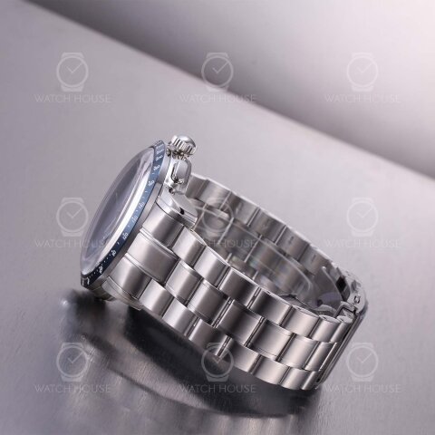 Die Zeppelin New York Chronograph 8878MB-3 wirkt durch ihr sattblaues Zifferblatt in Kombination mit der farblich abgestimmten Tachymeterlünette ausgesprochen modern und sportlich. Die vertikal gebürstete Oberfläche verleiht der Farbe Tiefe, während silberne Akzente an Indizes, Zeigern und Totalisatoren einen kühlen, technischen Kontrast setzen. Das Edelstahlgehäuse und das massive Gliederarmband greifen diesen Eindruck auf und sorgen für ein ausgewogenes Verhältnis von Robustheit und Eleganz. Im Dunkeln leuchten die Zeiger in einem klaren Blau, funktional, aber nicht aufdringlich. Der Gesamteindruck ist dynamisch, präzise und klar strukturiert – mit einem Hauch urbaner Strenge.